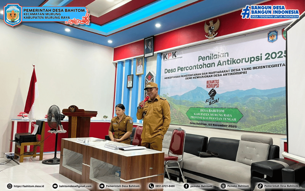 Bahitom, 3 November 2025 – Pemerintah Desa Bahitom melaksanakan kegiatan Penilaian Percontohan Desa Antikorupsi Tahun 2025 yang berlangsung pada hari Senin, 3 November 2025, bertempat di Balai Pertemuan Desa Bahitom. Kegiatan ini menjadi momentum bersejarah sekaligus tahapan akhir dari rangkaian panjang pembentukan Desa Bahitom sebagai Desa Percontohan Antikorupsi, yang telah dimulai sejak akhir Desember 2024.