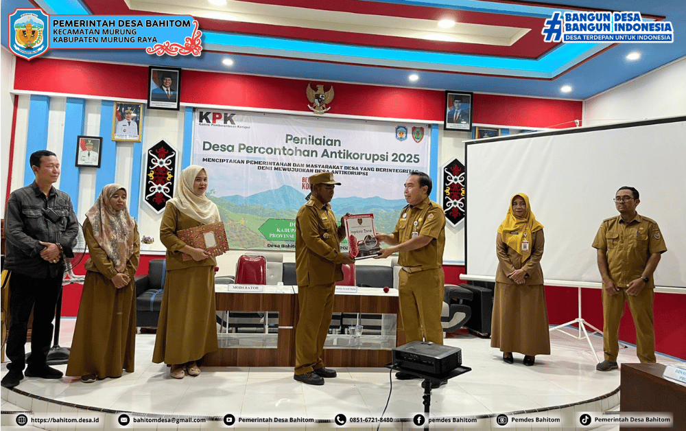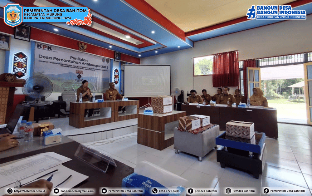 Desa Bahitom, Kecamatan Murung, Kabupaten Murung Raya, menjadi desa pertama di Provinsi Kalimantan Tengah yang dinilai dalam kegiatan Penilaian Desa Percontohan Antikorupsi Tahun 2025 yang diselenggarakan oleh Komisi Pemberantasan Korupsi (KPK) Republik Indonesia melalui tim replikasi percontohan desa antikorupsi dari Provinsi dan Kabupaten.