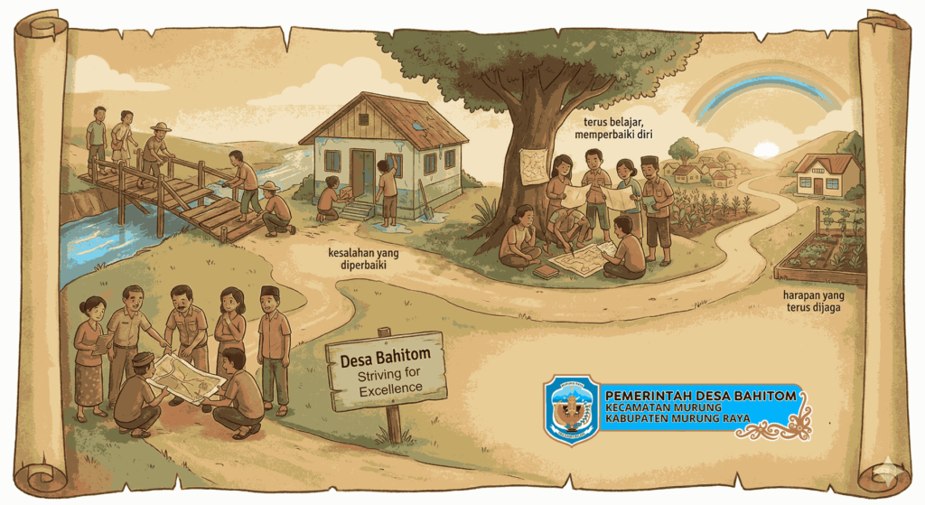 Dengan penuh harapan, kami menutup refleksi ini sebagai bentuk komitmen untuk terus memperbaiki diri, memperkuat tata kelola, dan menghadirkan pelayanan terbaik bagi masyarakat. Semoga Desa Bahitom, bersama desa-desa lain di Kabupaten Murung Raya, dapat terus melangkah dengan teguh, bersih, dan bermartabat demi masa depan yang lebih baik serta meninggalkan legacy yang baik pula untuk bagi generasi kita dan generasi yang akan datang.